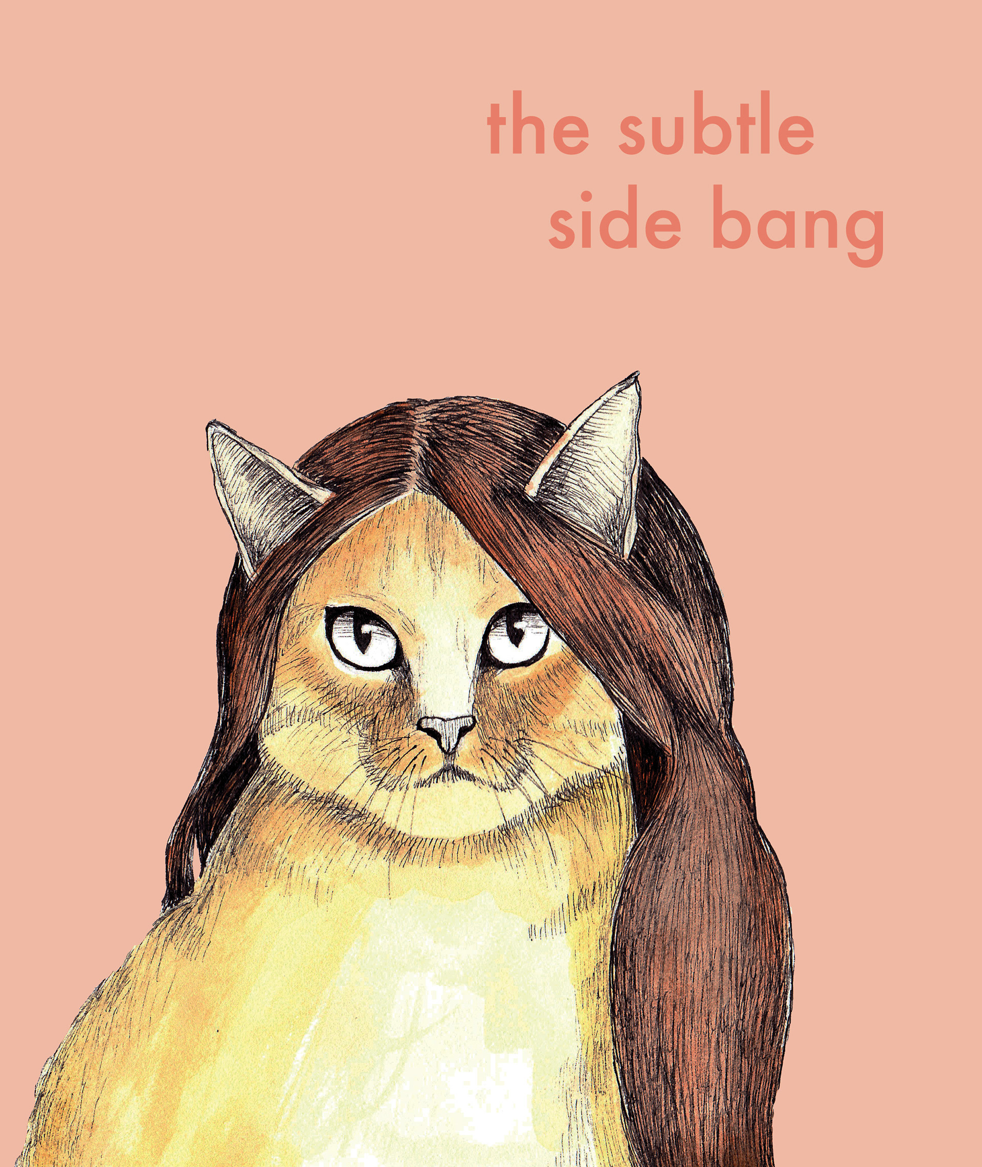 A fun zine displaying cats with trending hairstyles for 2018. The cats were hand drawn with pen and watercolor then scanned into Photoshop. The layout was done with InDesign. Why cats with human hair, you ask? All I have to say is, why not?
